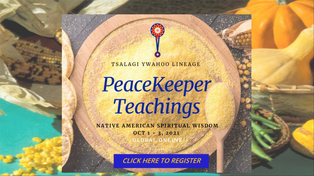 Peacekeeper students come together from many different religious and spiritual paths to reflect upon, study and build skills in fulfilling their shared commitment to carry peace to their families, communities, and the world. The Peacekeeper Teachings, a foundational practice of the Tsalagi Ywahoo lineage, trains people in personal and planetary transformation by learning to perceive the patterns of mind-emotion and how to bring forth peace in the hearts of the people and Mother Earth. The program is rooted in the timeless Native American spiritual wisdom of “caretaker mind” and living in right relationship within the circle of life. The program also offers the opportunity to align with one’s life purpose. Read more about the Ywahoo lineage and the original Peacemaker (the Pale One).