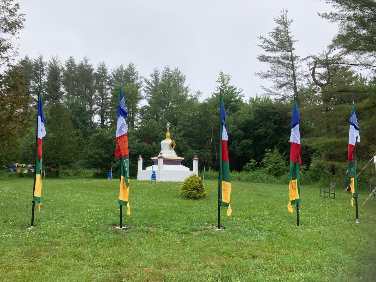 The Tibetan Community of Burlington VT and Sunray Meditation Community joined in prayer, smoke offerings, practices and feast by the Peace Stupa on Saturday June 22, 2024. As an auspicious day of Zamling Chisang Day, which means Universal Prayer and Purification Day, the Tibetans go to the mountain tops to burn incense and prayers flags.